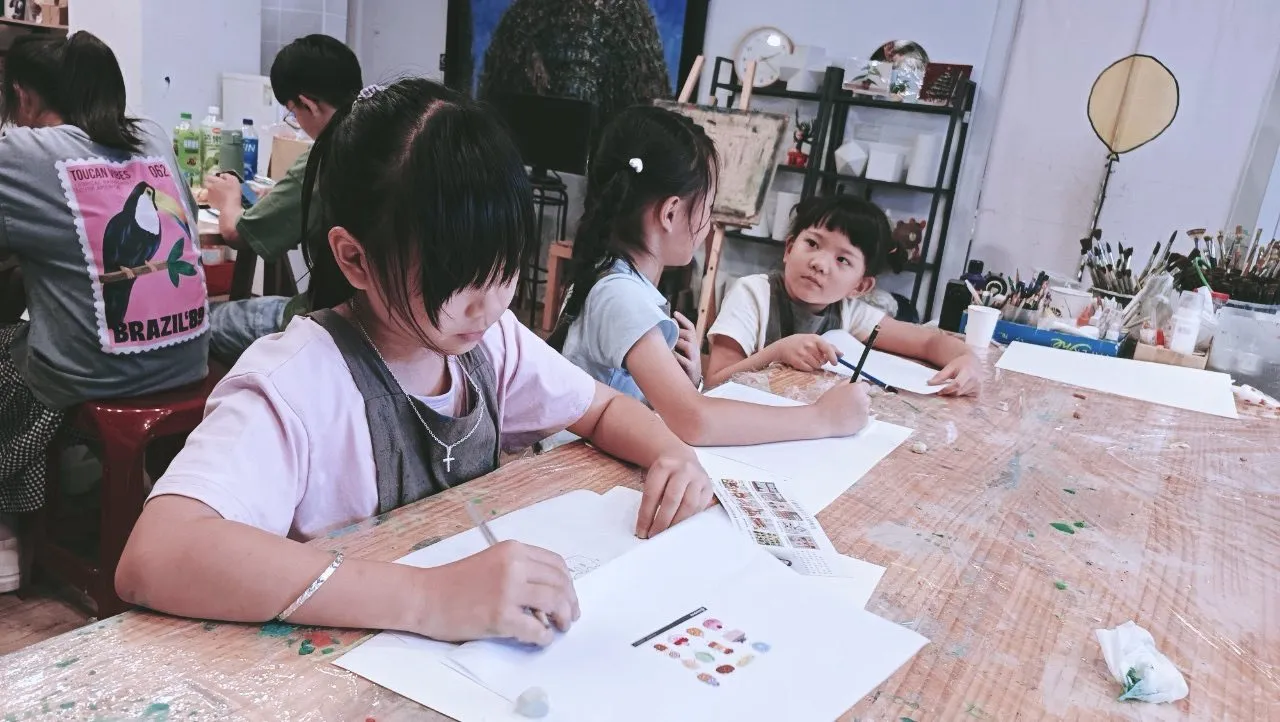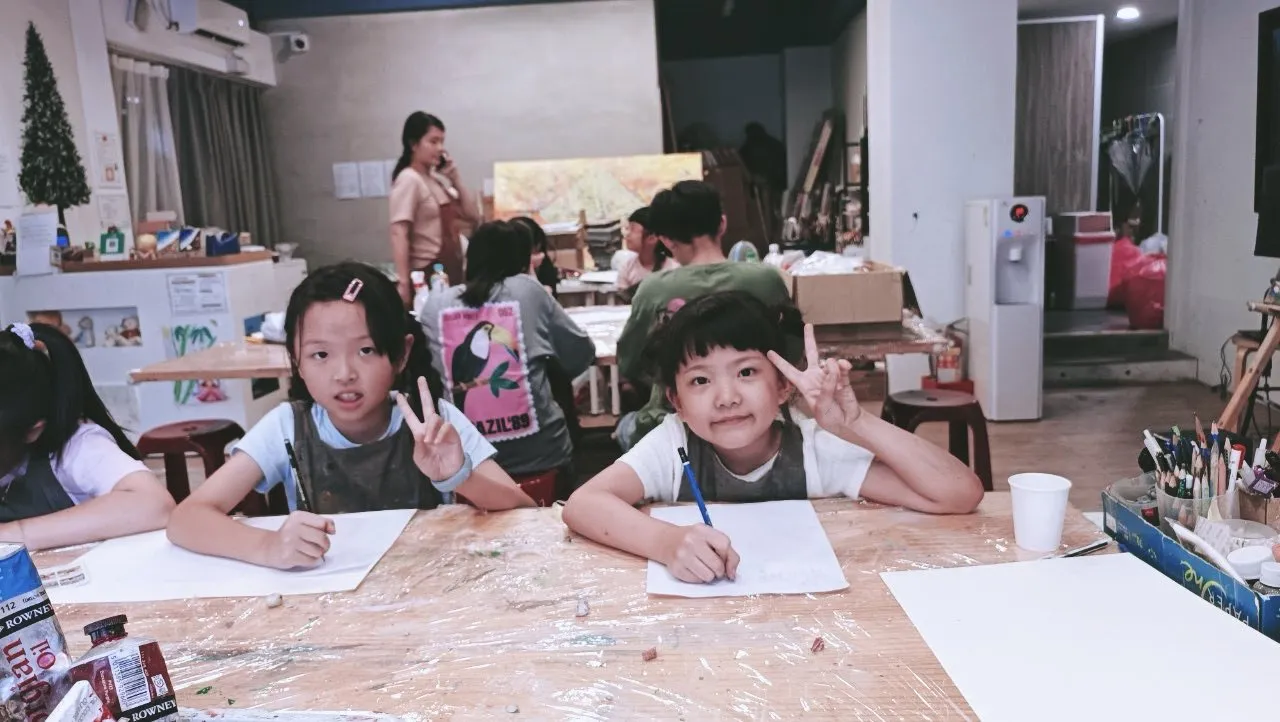 🎨 上午:進行了連續四天的「兒童繪畫課」,從基礎構圖到自由表現,孩子們越畫越有自信,每幅作品都展現了獨特的創意與情感!