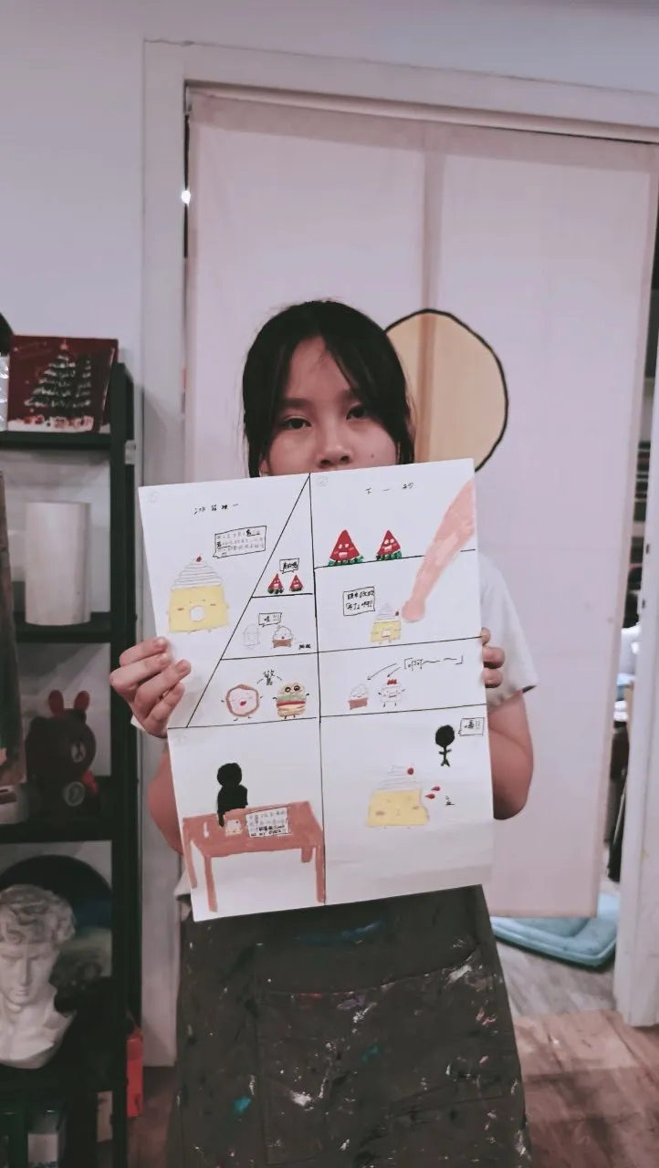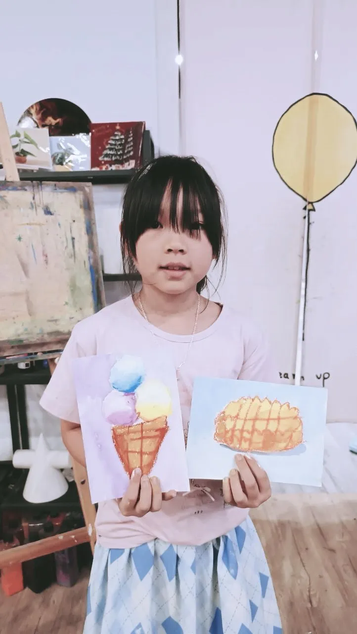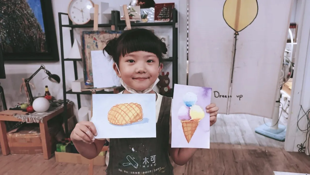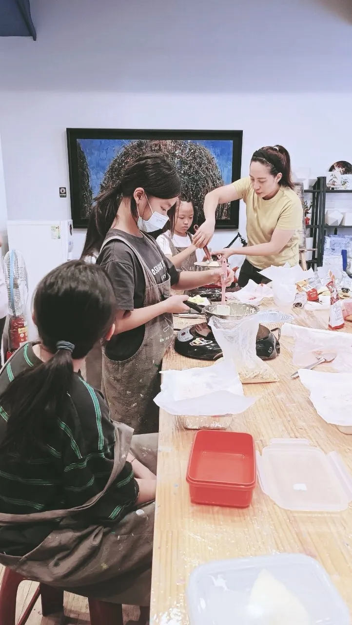 🍰 每天下午還有「點心時間」與「作品完成與展示」,孩子們彼此欣賞作品、拍照留念,累積屬於自己的一份藝術自信!