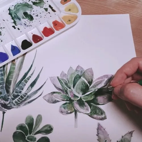 療癒植物水彩畫以多肉植物、蕨類、綠青檸竹芋做為繪畫主題,課堂上會教導如何準確的調出每種植物的顏色、水份的控制、造型和光影的表現等等,這將會是一堂培養美感的絕佳課程,不容錯過哦!