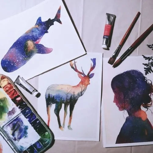 剪影類型以動物或人物為主,剪影的題材分成星空或森林兩種,如果學員想加入其它元素也可以討論。而水彩的技法會以配色、混色、渲染為重點,並深入淺出的引導學生完成一幅有趣動人的作品哦!